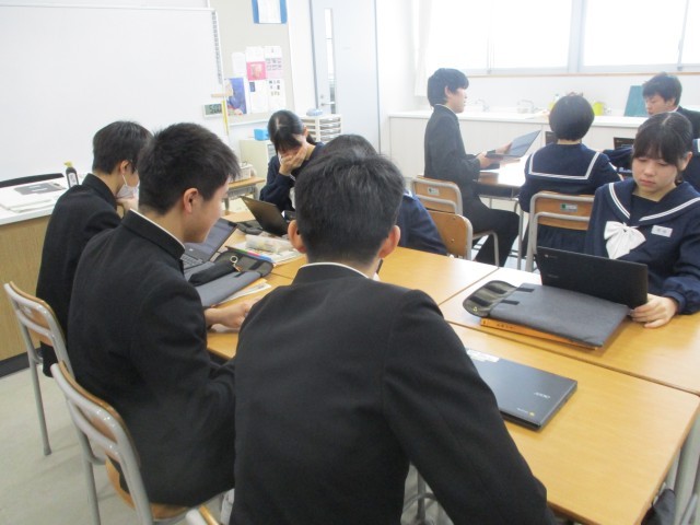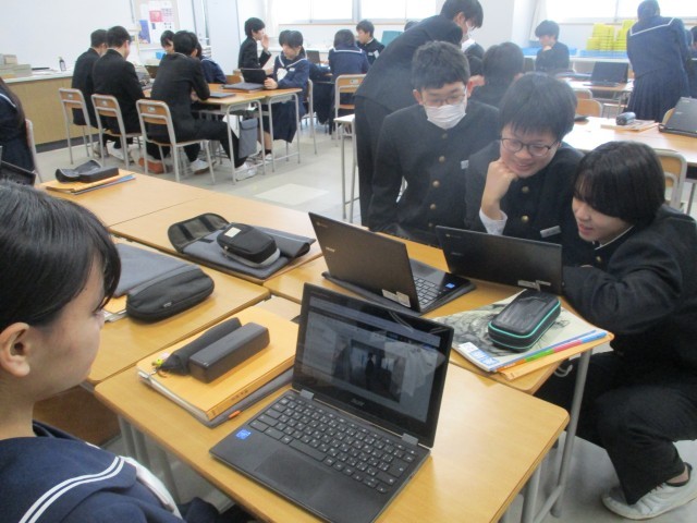 班ごとに制作していたミュージックビデオ(MV)が完成間近です。今日は、出来上がった映像を見ながら、微調整をしています。
