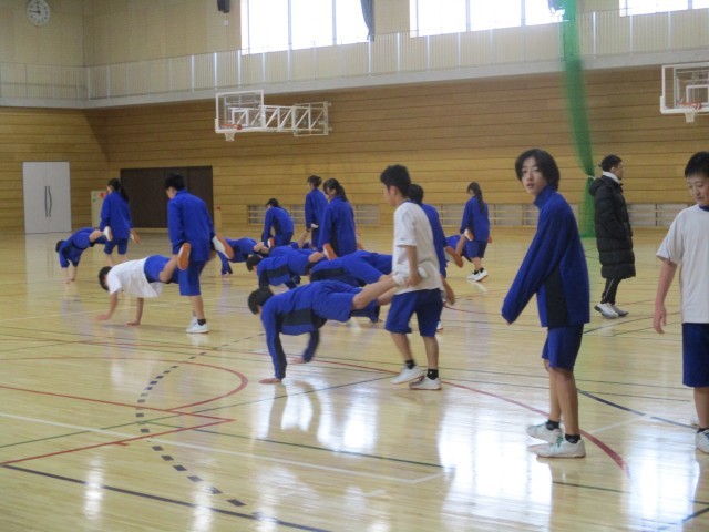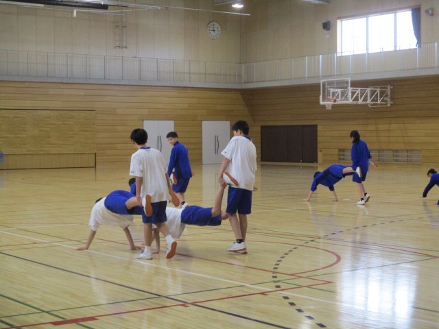 体育館は、4度。手押し車をしながら、体力つくりに励んでいます。