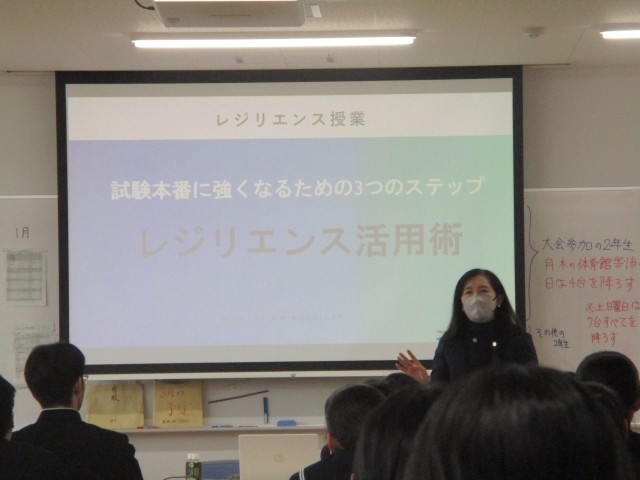 受検に対する不安を軽減し、将来困難に遭遇したときも乗り越える力、立ち直る力(レジリエンス)を培うことを目的として講師をお招きして講座を行いました。