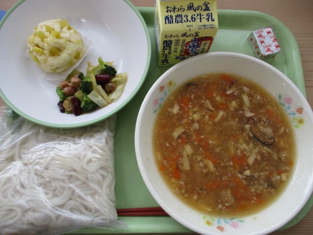 ソフト麺は、人気メニューの一つです。3年生の皆さんにとっては、給食を食べることができるのもあと何回でしょうか。