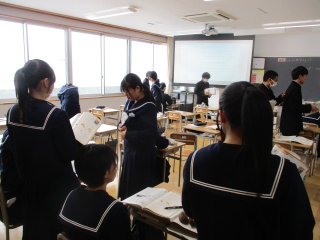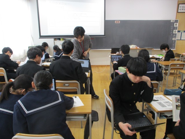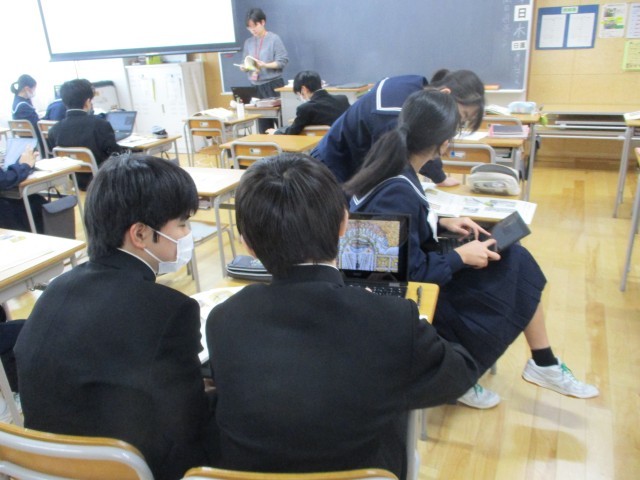 1月30日(木) 2年生 授業の様子 公開日 2025/01/30 更新日 2025/01/30 2学年 写真1枚目、2枚目は、国語の授業の様子です。最後の晩餐の絵や文を読み解いています。自由進度学習を取り入れています。ペアで取り組んでいる生徒もいれば、一人で取り組んでいる生徒もいます。スクリーンには、評価基準が示されています。疑問に思ったことは調べながら進めています。 写真3枚目、4枚目は、英語の授業の様子です。リスニングで聞き取った内容のシェアリングタイムです。 +1