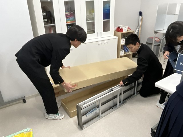 今日は富山市役所から借りてきた選挙箱と記載台を組み立てました。1年生は初めての、紙投票。ホンモノを手に、ドキドキしながら組み立てました。