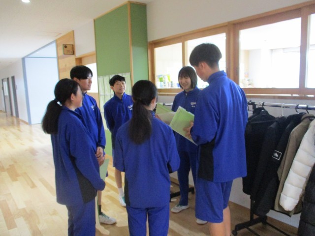 朝の廊下でリーダーミーティングをしているクラスがあります。1年間続いています。最初は、担任の先生が主となってしていたものが、今では生徒だけでしっかり行っています。成長ですね。