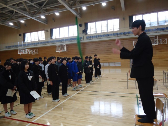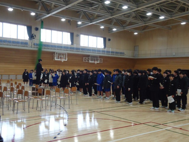 3月6日(木) 2年生 合唱練習 公開日 2025/03/06 更新日 2025/03/06 八尾中学校のページ 2年生は、卒業式に向けて合唱練習をしています。卒業の歌「旅立つ君へ」を、3年生に対する感謝の気持ちを込めて練習しています。 +1