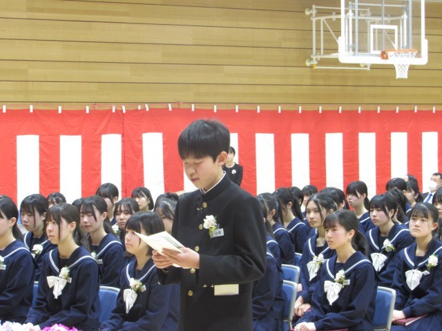3月13日(木) 第3回 卒業証書授与式 その8 公開日 2025/03/13 更新日 2025/03/13 八尾中学校のページ 卒業生を代表して、前生徒会長が「答辞」を述べました。 入学してからの思い出を語り、今後の八尾中学校を在校生に託しました。 最後に教職員、保護者に感謝の気持ちを伝え、卒業生みんなで「卒業の歌(栄光の架け橋)」を合唱しました。 教職員も、歌詞の意味を卒業生に重ね合わせ、目頭が熱くなっていました。 +6
