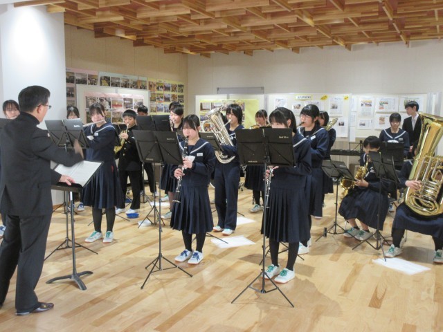 吹奏楽部が、学校ギャラリーで演奏してくれました。
