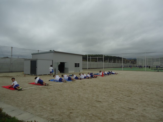 グラウンドでは、サッカー部、野球部、女子ソフトテニス部、陸上競技部が活動しています。