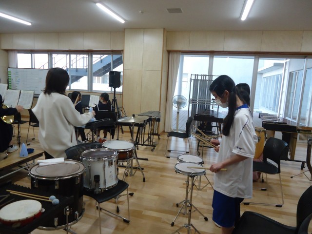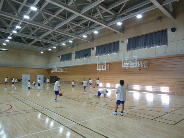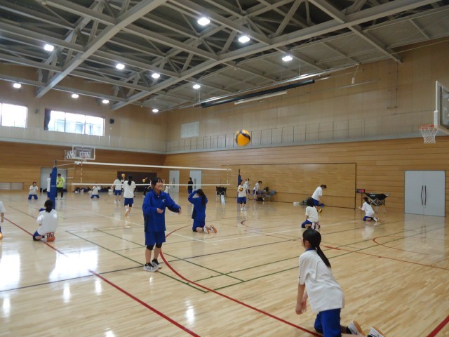 体育館では女子バスケットボール部、女子バレーボール部が活動しています。