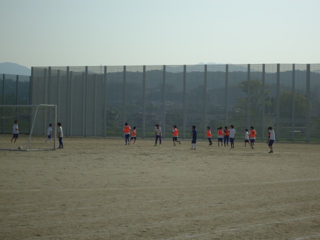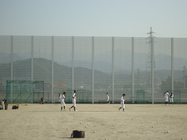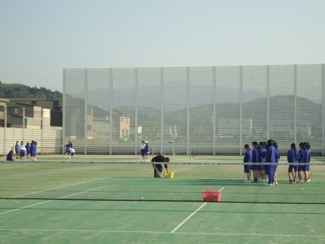 グラウンドでは、女子ソフトテニス部、サッカー部、野球部が活動しています。