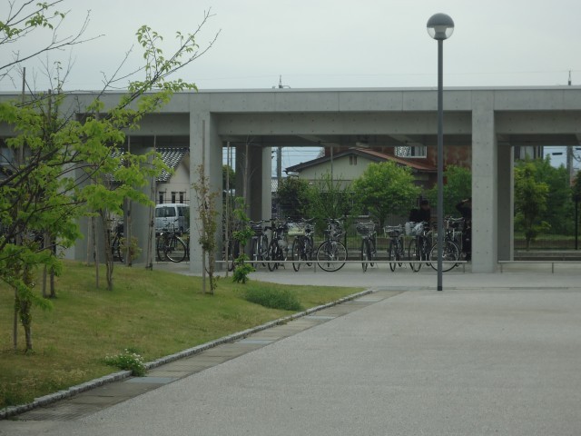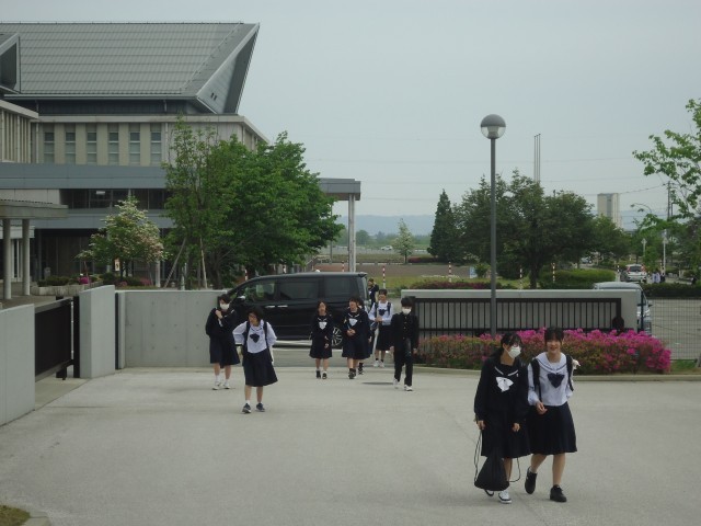 どんよりと曇った空ですが、生徒は元気に登校しています。