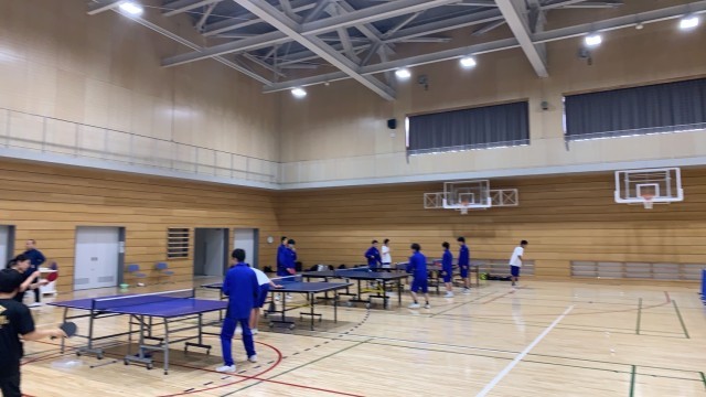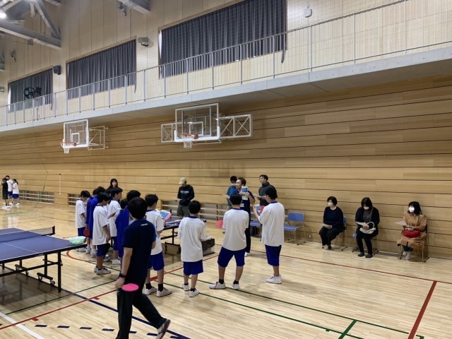 卓球部は、1年生の保護者も参加して、卓球の講習会が行われています。2・3年生は、基礎練習から実践練習に取り組んでいます。隣では女子バスケットボール部が練習しています。