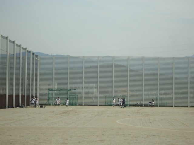 グラウンドでは、陸上競技部、野球部、サッカー部が活動しています。