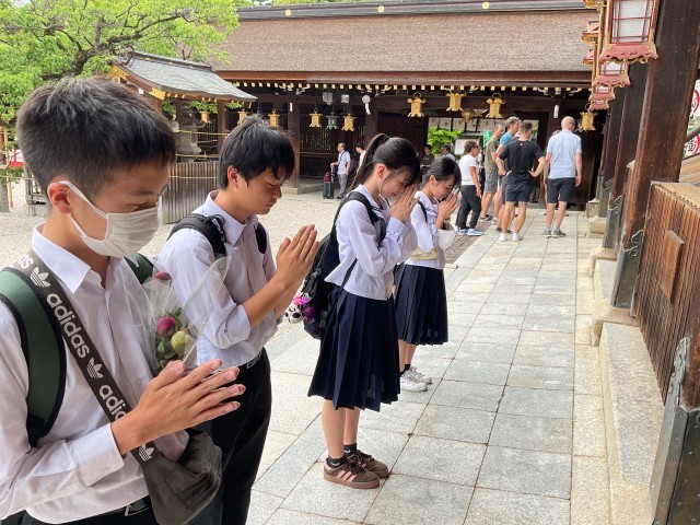 北野天満宮に到着しました。志望校に合格できますように…