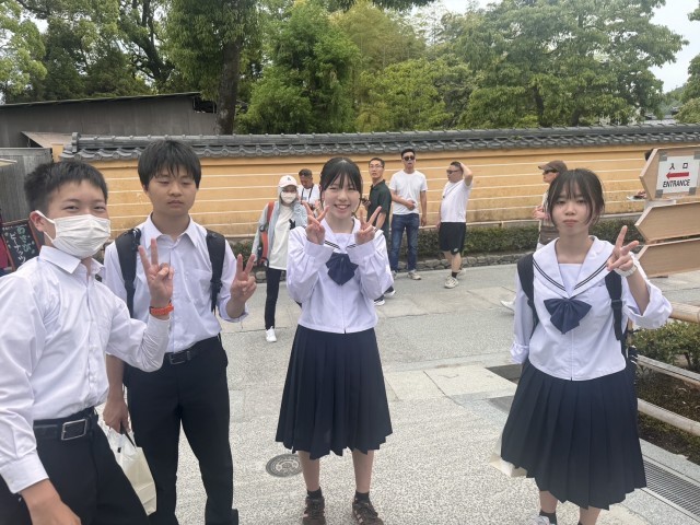 金閣寺に到着した班と出会いました。見応えがあったようで、とても満足した表情をしています。