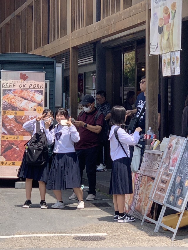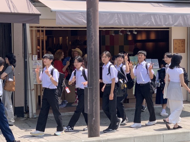 1組、嵐山にいますが、大変な人混みです。暑さもあり、なかなかです…