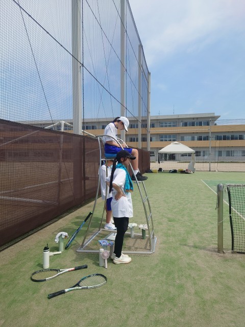 1年生は先輩に教えてもらいながら、審判の練習をしています。