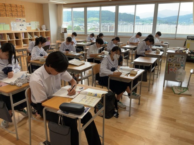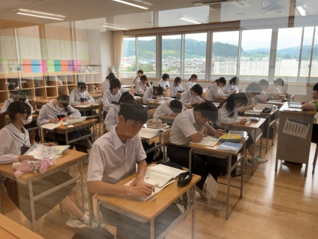 掲示作業が終わりました。後半は自習です。23日から始まるテストに向けて、テスト勉強に取り組んでいます。進路も見据えて、気合いが入っています。