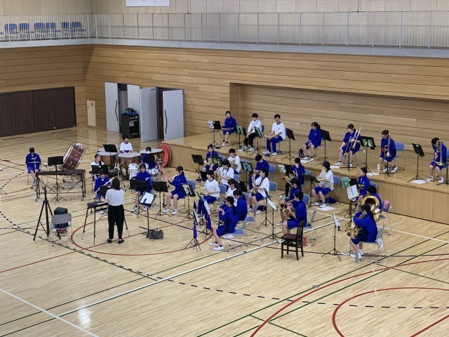 運動部が各種大会に挑む中、吹奏楽部も頑張っています。明日、オーバードホールで行われる吹奏楽祭に向けて体育館でリハーサルしました。