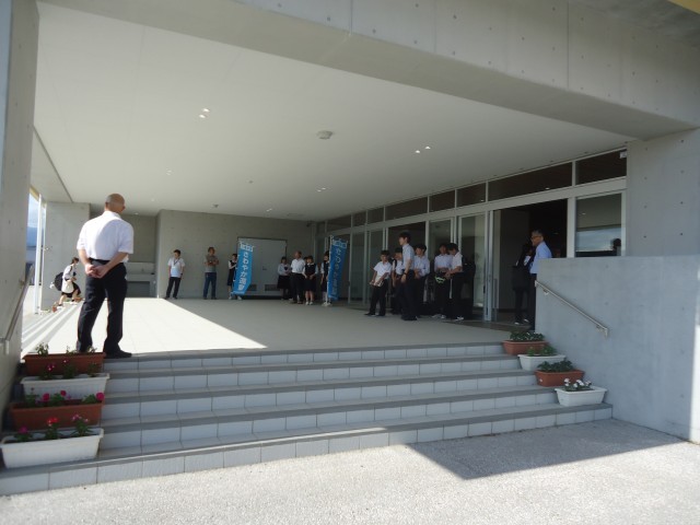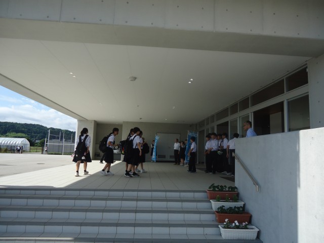 八尾学園さわやか運動が始まり、八尾高校の生徒の皆さん(本校卒業生)が来校し、あいさつ運動に参加してくださいました。
