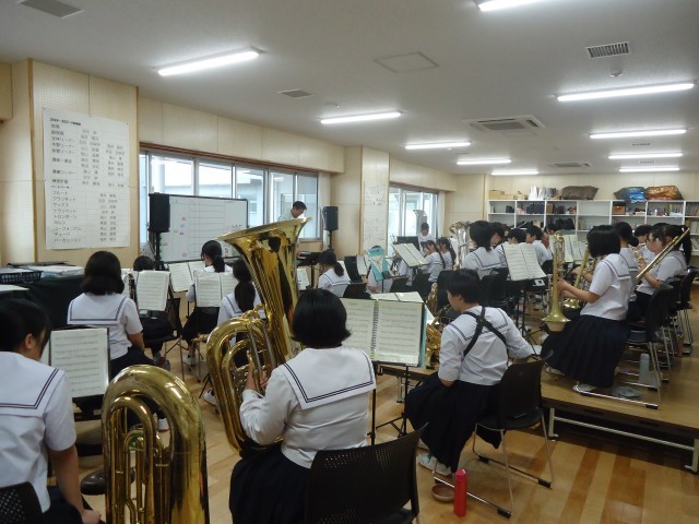 グラウンドで陸上競技部、サッカー部、楽器保管庫で吹奏楽部が活動しています。