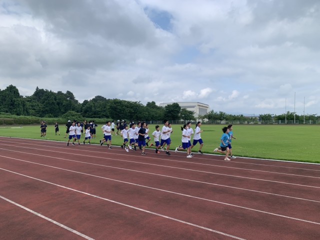 陸上競技部は、県中学校選手権大会と通信陸上大会に向けて、大沢野競技場で練習しています。