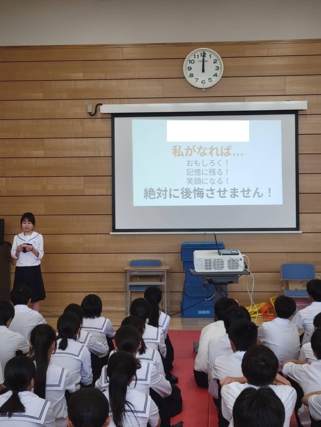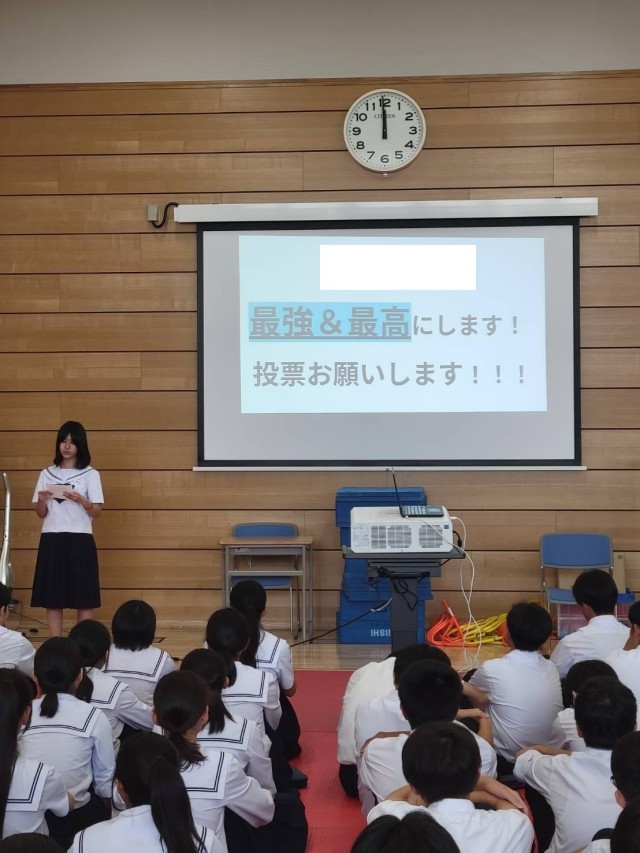 3年生は、来る体育大会の実行委員を選出するため、学年集会を開きました。立候補者が、それぞれの思いを熱く語りました。今年も熱い体育大会になりそうです。