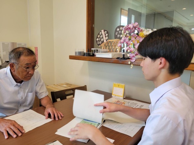 本日放課後、3年生の代表が観光会館に出向き、おわら風の盆行事運営委員会の会長様に今年度の「八尾をプロデュース」の説明と、ご協力の依頼をしました。