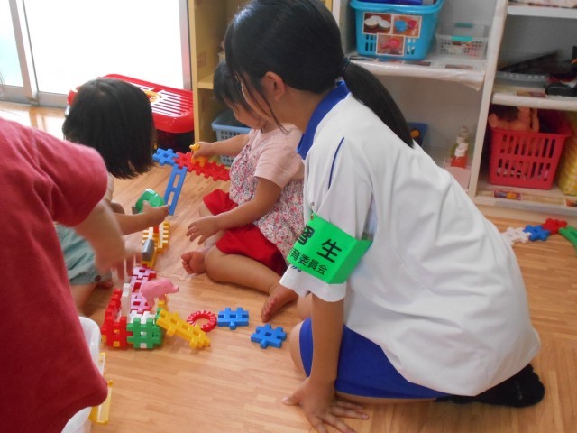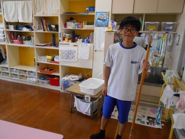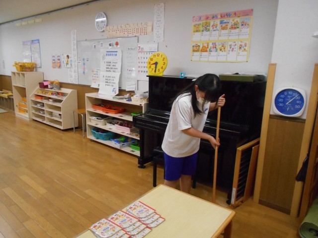 子どもたちとふれあうだけでなく、お部屋の中の掃除など、様々な仕事があることを学んでいました。
