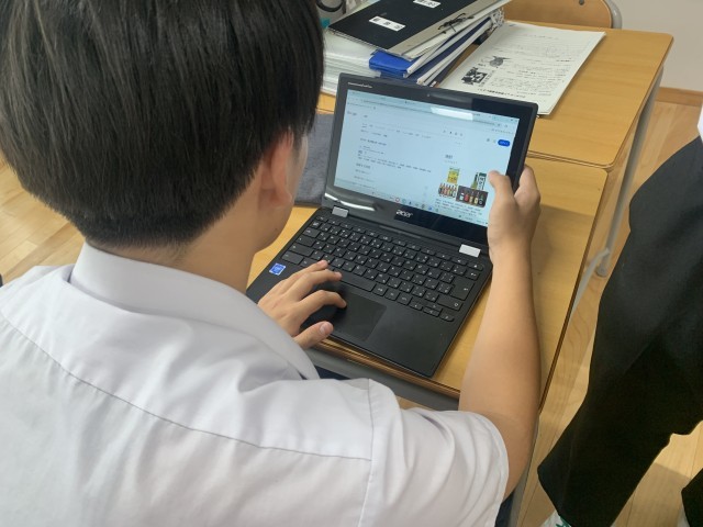 広報部では、それぞれ作ったスライドを見合って改善点等を共有し合っています。