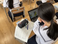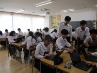 教室でも交流している生徒を見つけました!相手のマレーシアの子は日本語が喋れるよ...