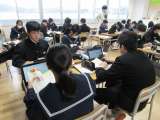 写真上・中は、英語の授業の様子です。日本を紹介する文を書いています。chrom...