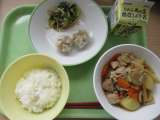 4限が終わると素早く給食の準備に取りかかります。そして、班のみんなで楽しく給食...
