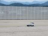 用務員さんがトラックで、広いグラウンドをならしてくださっています。生徒の皆さん...