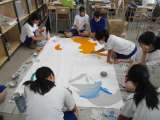 美術室で、4団合同のデコレーション制作に励んでいます。もう着色に取りかかってい...