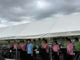 橋の揮毫した生徒の紹介が大きなパネルに掲示してありました。 吹奏楽部は、テント...