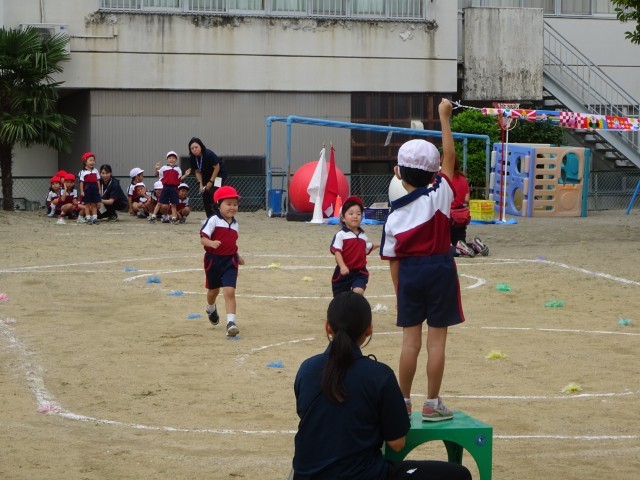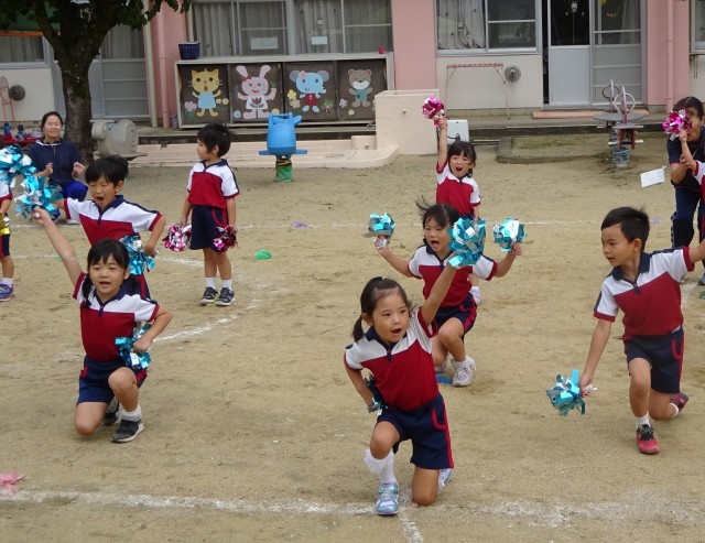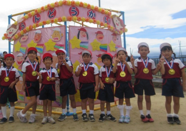 子どもたちが楽しみにしていた運動会がありました。ばら組が「晴れますように・・・」とてるてる坊主をつくった思いが空に届き、園庭で行うことができました。今年の運動会のテーマは「にこにこ わくわく どきどき 元気100倍頑張ろう」です。その言葉通り、子どもたちはかけっこに玉入れ、応援合戦と力いっぱい取り組んでいました。