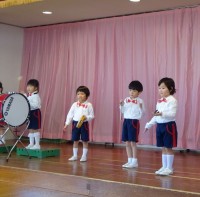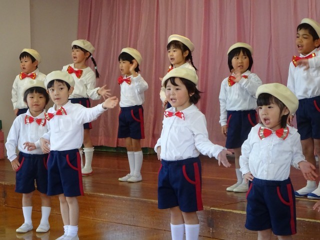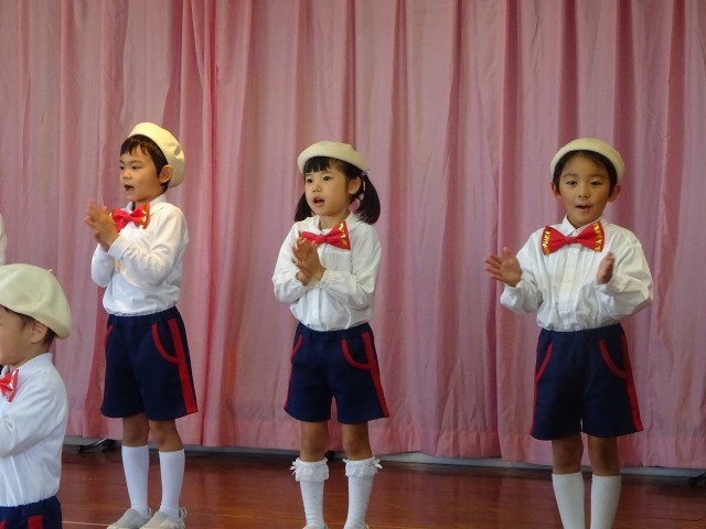 「幸せなら手をたたこう」の曲の最後にある♪幸せならウィンクしよう♬で、片目が閉じられずに両目を閉じてしまったり、片目を閉じながらつい口が開いてしまったりとかわいいポイントが満載で、会場の皆さんにも笑顔がこぼれました。「みんなでするって楽しいね」「ちょっぴり緊張したかも」と話しながら、やり終えた満足感を味わっていました。また、お家でも一緒にやってみてくださいね!