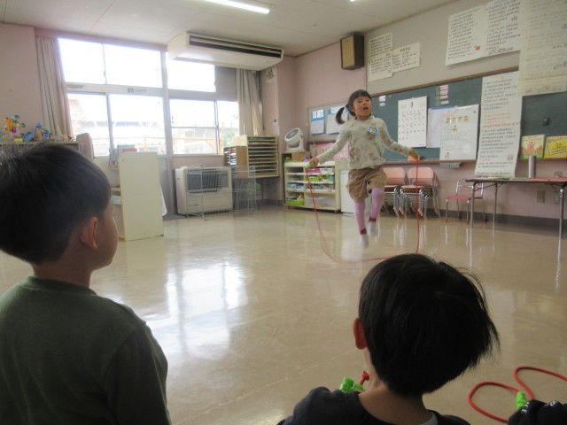 縄跳びや鉄棒、コマ回し、手品、折り紙など子供たちは自分の得意なことを嬉しそうに披露していました。これからも一人一人の好きや得意を大切に、自信をもって小学校へ行ってほしいと思います。