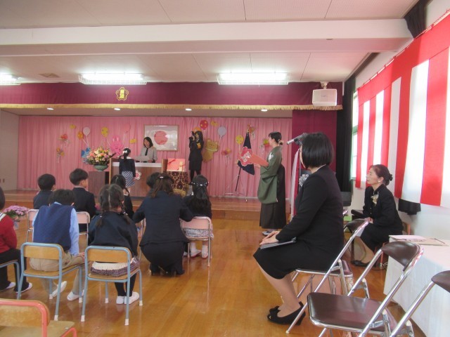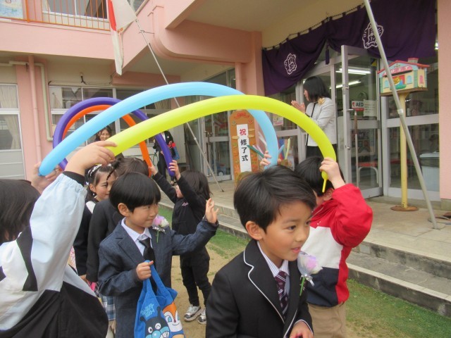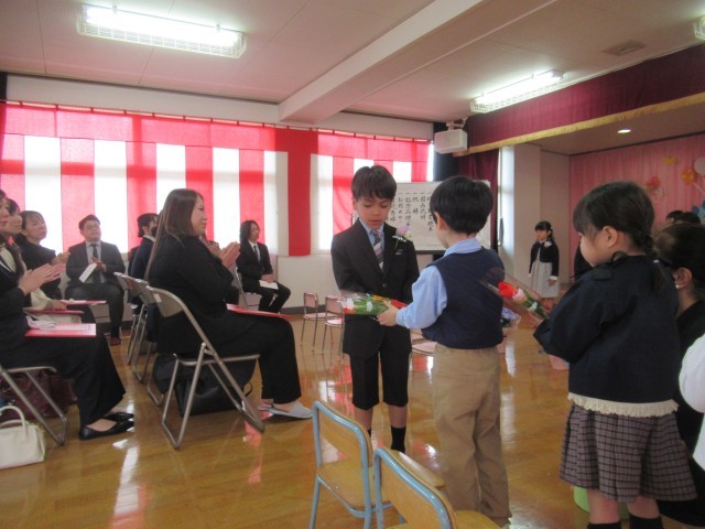うさぎ組ともも組の子どもたちは、ばら組を「おめでとう」の気持ちを込めて見送りました。とても素敵な修了式になりました。