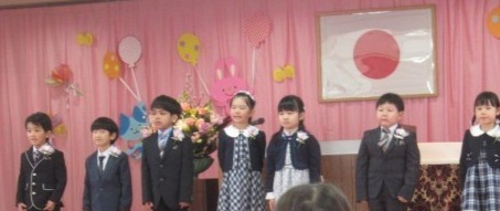 自信に満ちあふれ、笑顔で入場するばら組の子どもたち。園長先生から修了証書をいただき、お別れの言葉を堂々と言う姿がとても立派でした。小学校へ行っても大きく羽ばたいてくれることを願います。