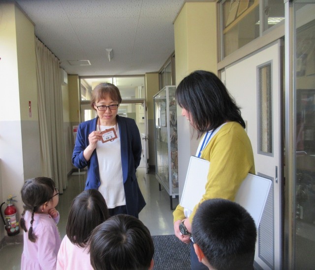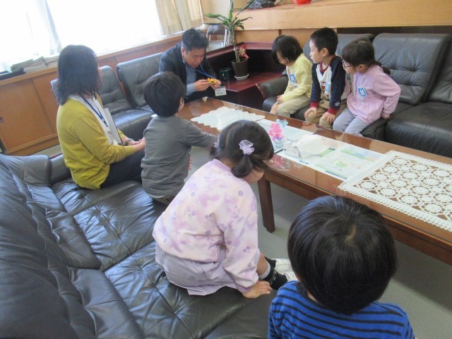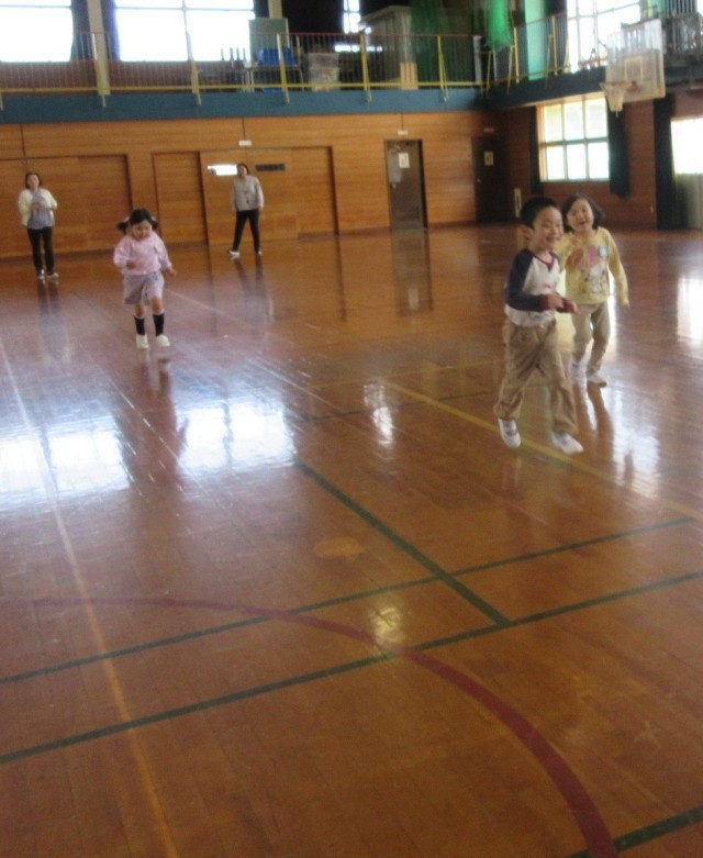 保健室では、養護の先生から「ケガや病気になったとき、何か困ったことがあったときに来るお部屋ですよ」と教えていただきました。幼稚園にはない大きな身長計やベットに驚いていました。新しく着任された教頭先生にもご挨拶。校長室では、校長先生から「いつでも遊びに来られ」とお誘いを受け、ふかふかのソファにも大喜びでした。体育館では、一年生の体育の様子を見て「○○ちゃんいるよ」「大きな声で返事してるね」と言いながら、久しぶりの再会を喜び、広い体育館を走り回りました。