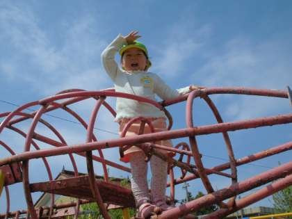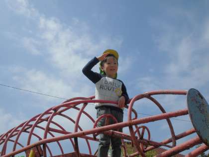 「自分でできた!」と、達成感がいっぱいで、いつもの園庭が少し違ったように見えているのかもしれません。晴れ晴れとした表情です!
