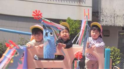 一緒につくったこいのぼりで「すぐ遊びたい」と言っていたので、さっそく園庭で遊びました。かざぐるまが回ると「回ったよ!」ととっても嬉しそうな子供たちでしたよ。今日は本当にありがとうございました。またお気づきになったこと等、いろいろ教えてください。