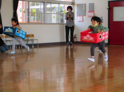 こどもの日の集い 2 公開日 2021/04/30 更新日 2021/04/30 楽しい月岡幼稚園ニュース 年中、年長組は「こいのぼりリレー」をしました。次の人に代わるときの急ぐ姿が、負けたくない気持ちがよく表れていましたね。年長組は、ゲームの手伝いもしてくれました。