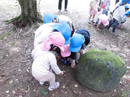 帰りは壇山神社に寄ると、たくさんのカエルがお出迎えしてくれ、子供たちも大喜びでした!帰りの会では「滑り台が楽しかった!」「私はブランコ!」とそれぞれに楽しかったことを話してくれましたよ。お家でも、お話ししてみてくださいね。