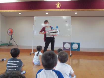 今日は「虫歯予防の日」です。全クラスで集まり、保健指導がありました。虫歯の怖さを知らせたり、歯を大切にするために「歯磨きをしっかりしよう」ということで、歯磨きをするときのポイントを知らせたりしました。