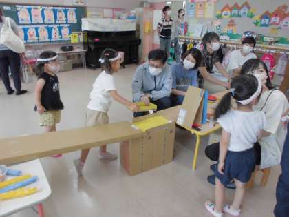 自由遊びの時間を多く設けたことで、子供たちが楽しんできた遊びの様子や、友達や教師との関わり方をじっくり見ていただくことができたと思っています。