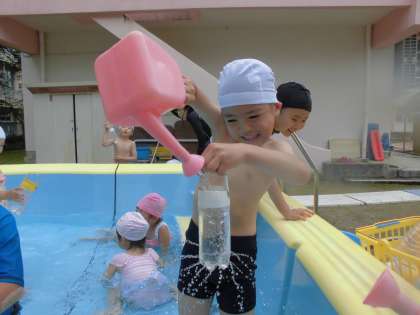 今週もよく遊びました。プールの後の給食では疲れも見られたので、週末はゆっくり体を休めてくださいね。