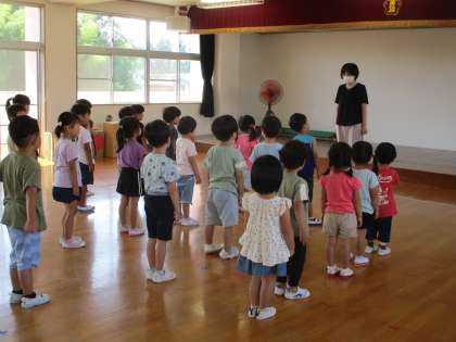 1学期の終業式がありました。園長先生からは、1学期の間でみんなが大きく成長したことや、夏休み中は交通事故に気を付けること等の話があり、みんな真剣に聞いていました。夏休み中、時々思い出して、元気に過ごしてほしいと思います。保護者の方には、たくさんのご理解とご協力をいただき、ありがとうございました。