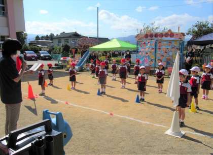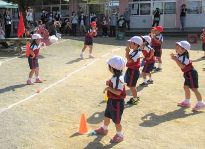 運動会 2 公開日 2021/09/25 更新日 2021/09/25 楽しい月岡幼稚園ニュース 開会式では、年長組の係の友達が誓いの言葉を言いみんなも復唱しました。準備体操「元気体操DA☆ZE-!」では、元気な声が響きポーズもよく決まっていましたね。年長組さんは係の仕事もよく頑張ってくれました。